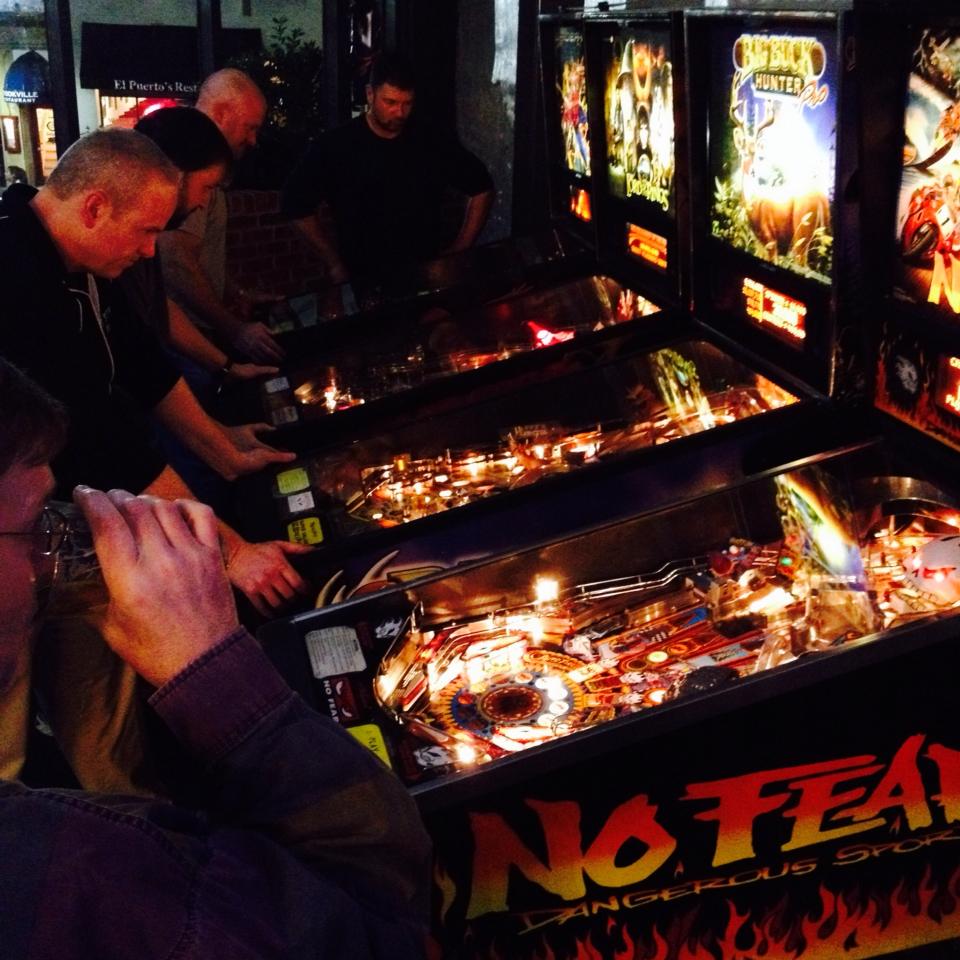 On Saturday, Joe, Taylor and I went to Charlottesville to play in the Fall Downtown Mall Silverball Crawl. This tournament was organized by Chris Newsome who organized the last tournament in Charlottesville. The plan was to play in three locations – Miller’s Restaurant on the Downtown Mall, The Arena – ice skating rink on the Downtown Mall and West Main: A Virginia Restaurant. The Arena usually has one pinball machine – Lord of the Rings. The operator of Lord of the Rings brought No Fear, Spiderman and Big Buck Hunter to the arena to be played in the tournament. The cool part was that he stayed and played in the tournament too. West Main has a Junkyard machine and Miller’s has Game Show and Harley Davidson.